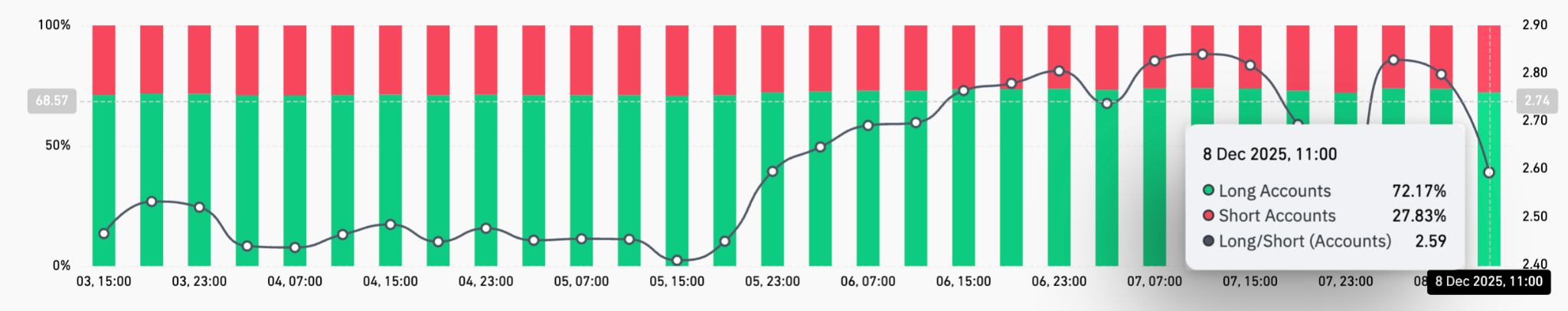 XRP: Long/short accounts on Binance. Source: CoinGlass