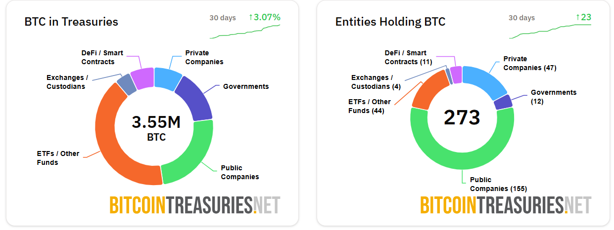 Public companies have significantly increased their Bitcoin holdings, which now total nearly 867,000 BTC. Source: BitcoinTreasuries.NET