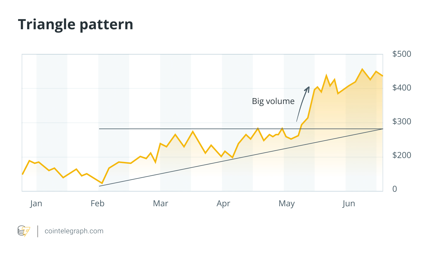 Example: During periods of market uncertainty, asset charts often display triangle formations. In early 2025, Ether’s (ETH) price action formed a symmetrical triangle amid uncertainty surrounding decentralized finance (DeFi) regulations. The price later broke out bullishly as regulatory clarity improved.