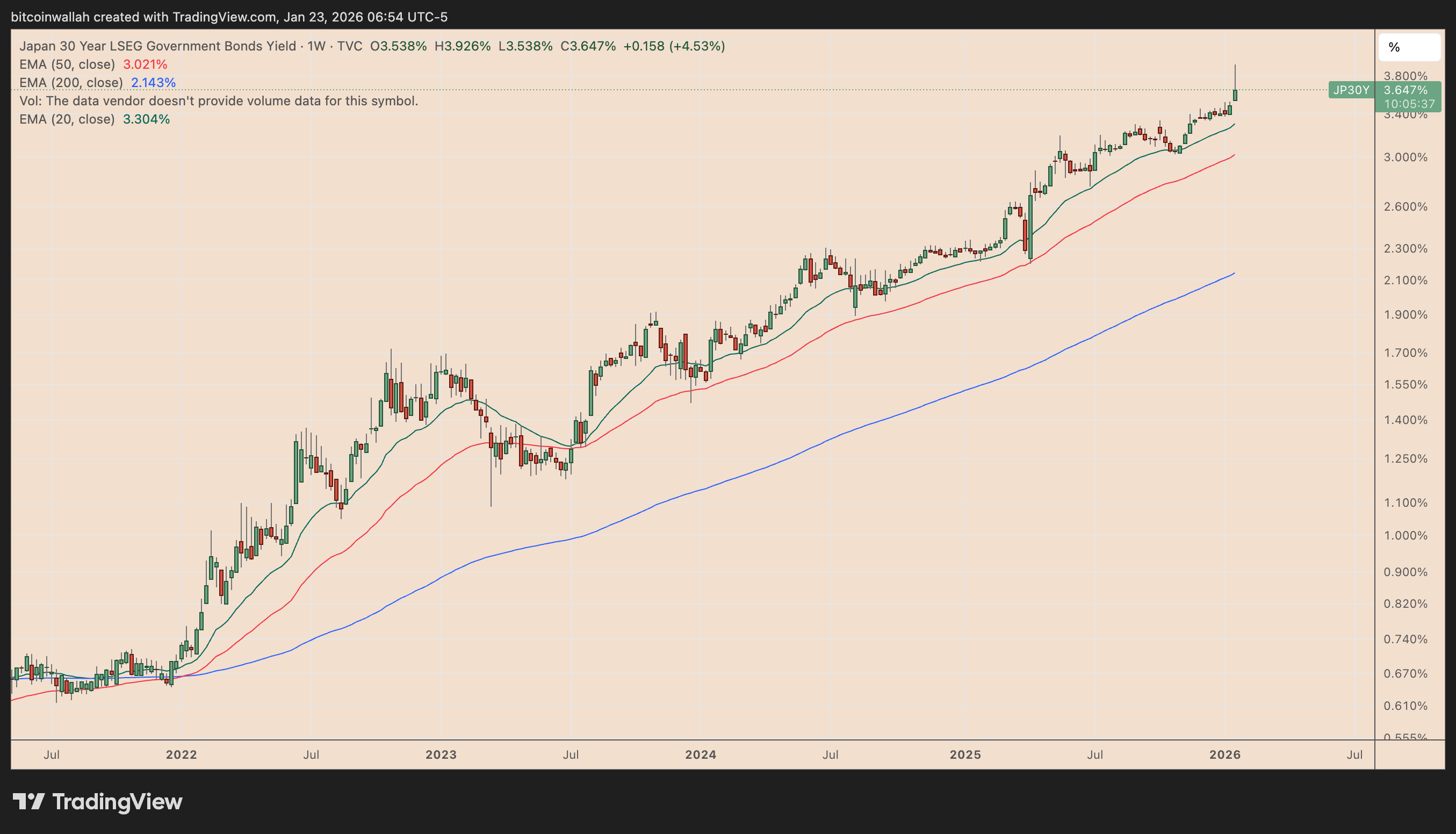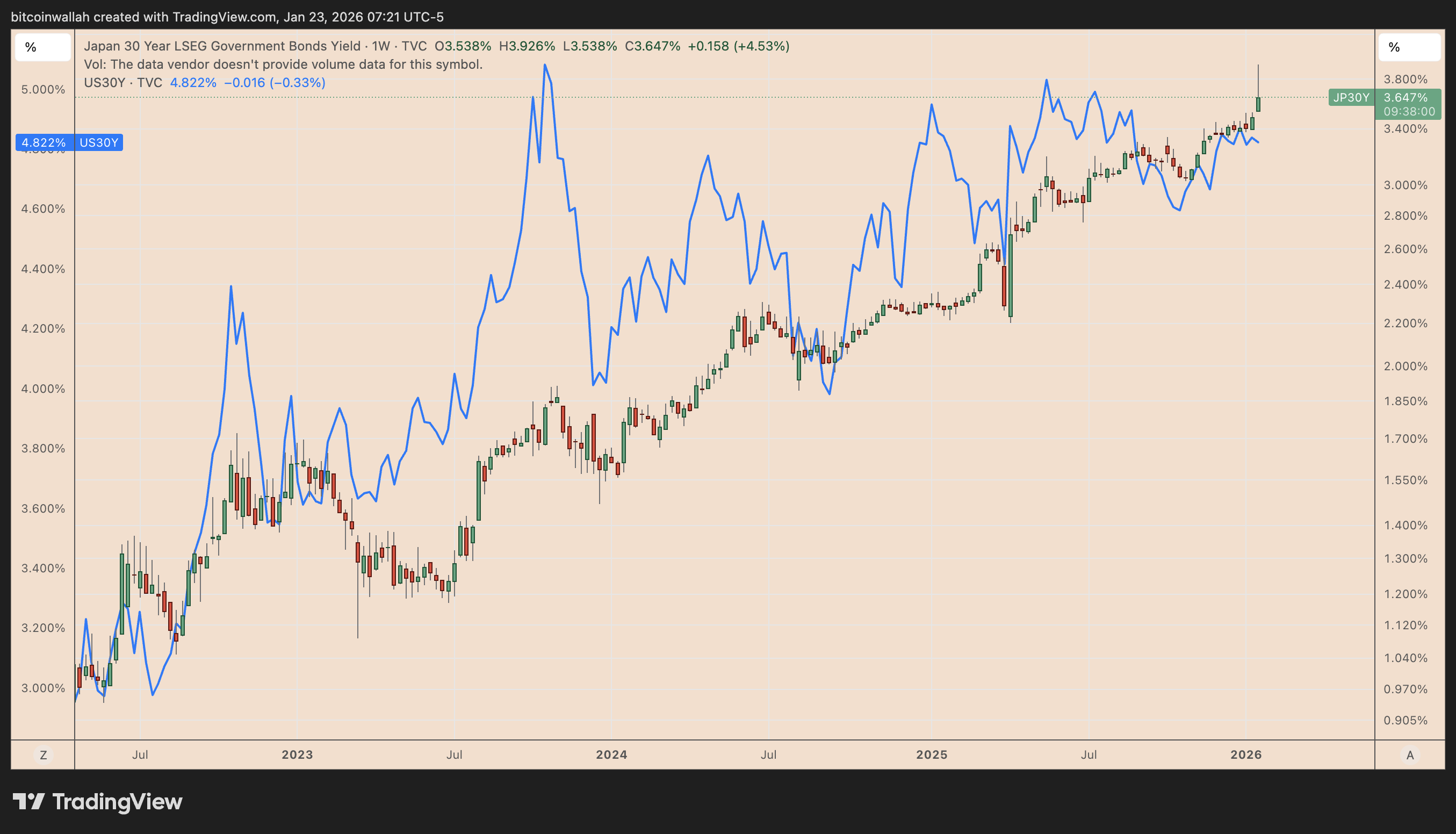 BTC price faces pressure as markets brace for a sustained rise in long-term yields driven by economic deficits, particularly in Japan.
