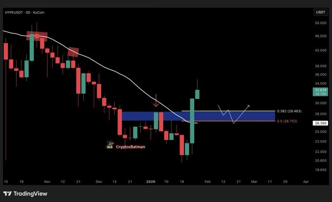 HYPE was trading around $33.9 at the time of writing, up modestly on the day but posting a weekly gain of more than 55%.