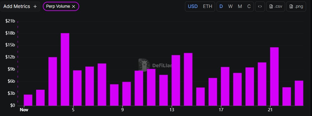 Perpetual DEX volumes remain consistent in November