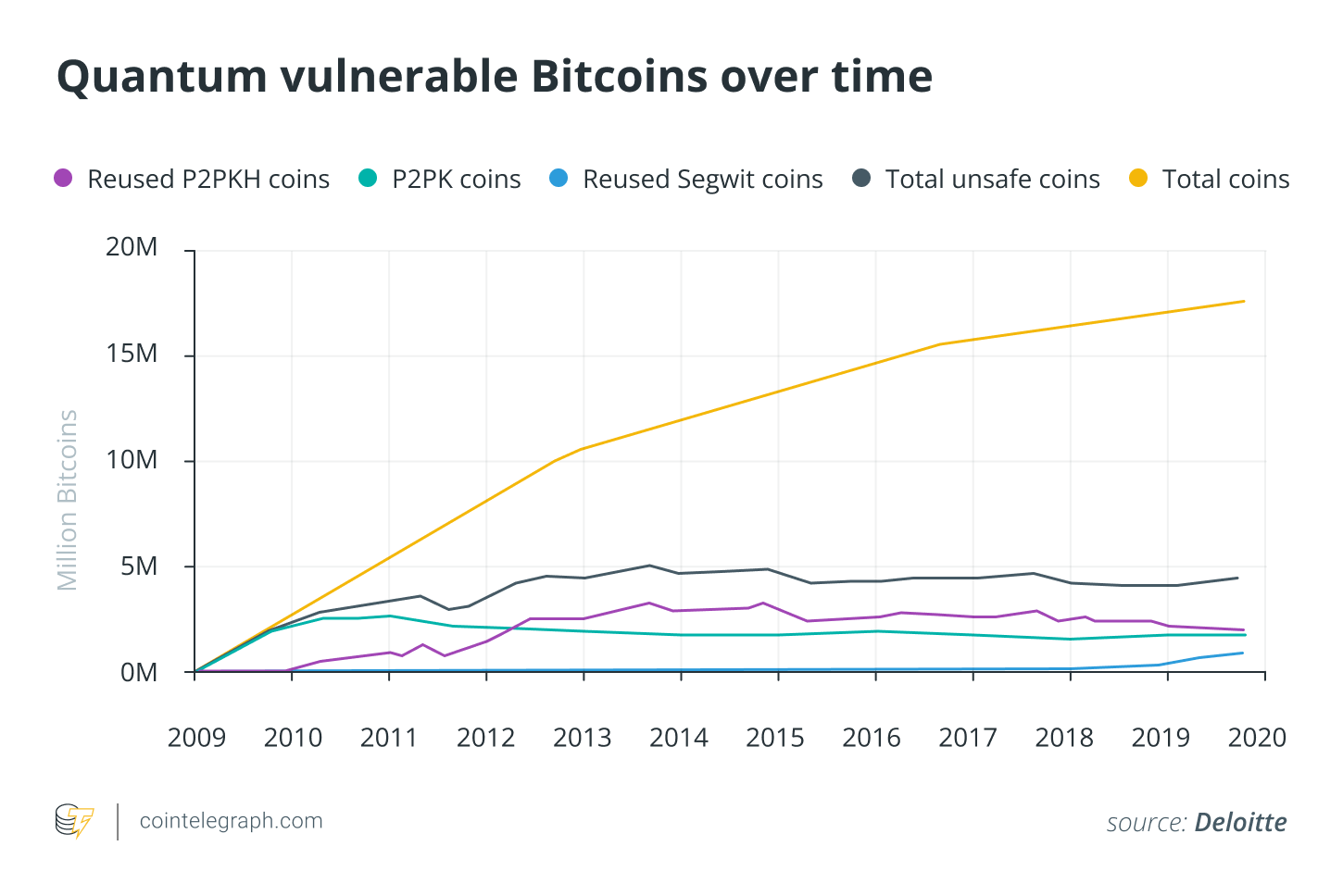 An additional 4.49 million BTC is vulnerable but could be secured by migration, suggesting their owners are likely still able to act.