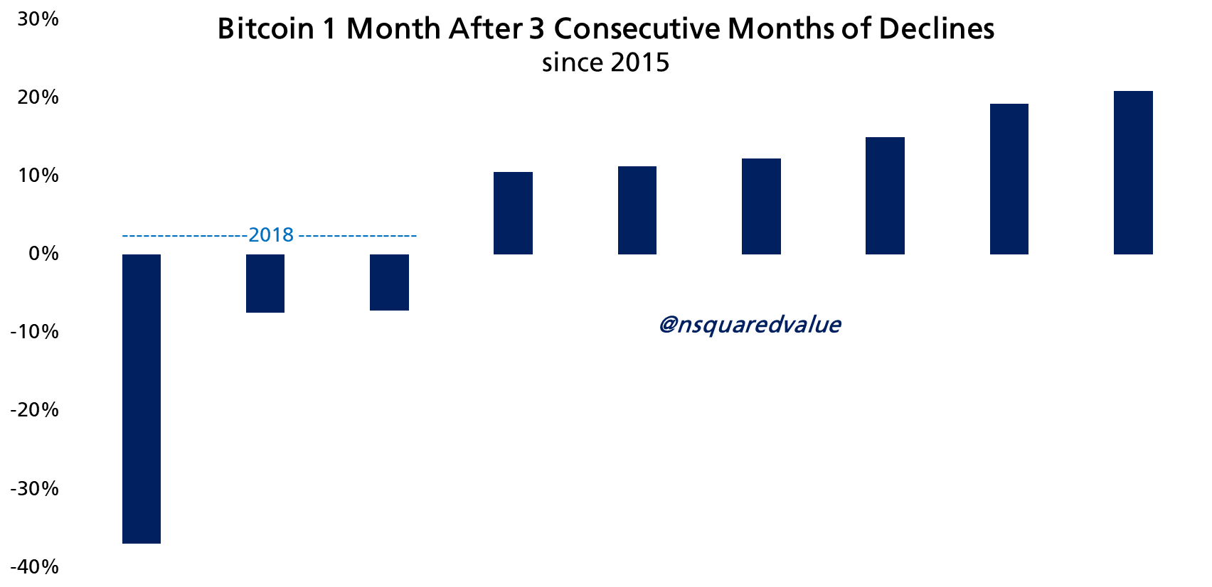 “What happens next? 1 month later, Bitcoin was positive 67% of the time. However, the 3 negative instances were all in 2018 and marked the end of that bear market.”