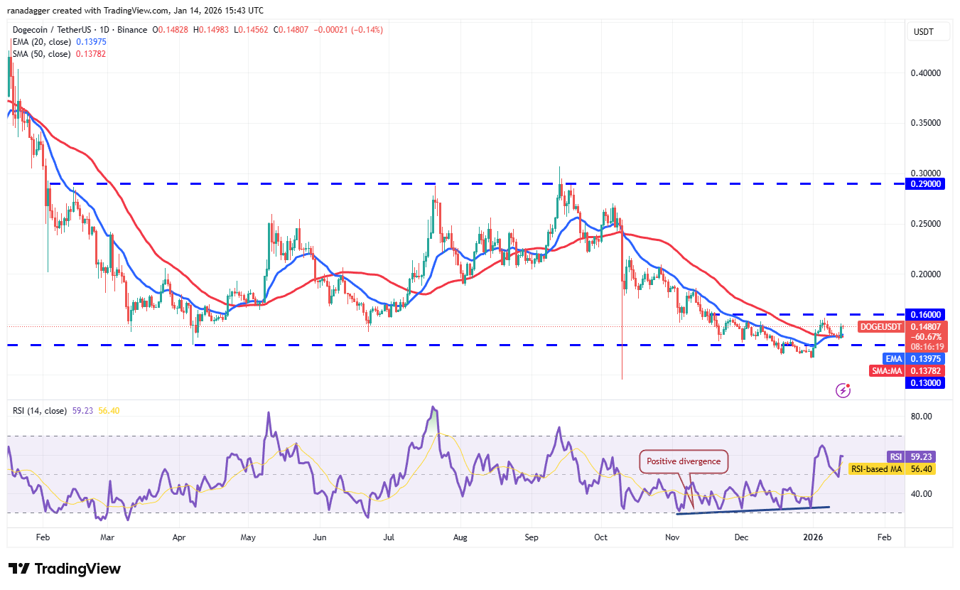 Instead, if the price turns down sharply from the $0.16 level, it suggests that the bears continue to sell on rallies. That may keep the pair range-bound between $0.16 and $0.12 for some time.