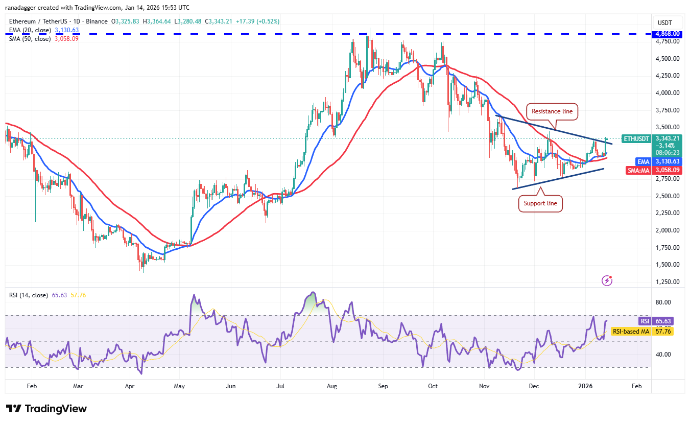 The bears will try to pull the price back inside the triangle, but if the bulls successfully defend the resistance line, the ETH/USDT pair may rally to $3,659 and then to $4,000.