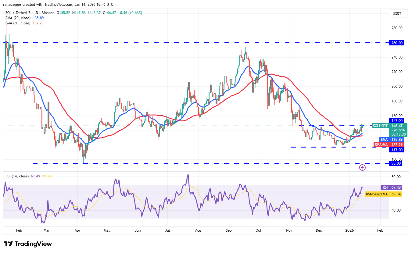 The upsloping 20-day EMA ($135) and the RSI near the overbought zone suggest the path of least resistance is to the upside. If buyers clear the $147 level, the SOL/USDT pair may pick up momentum and soar toward $172.