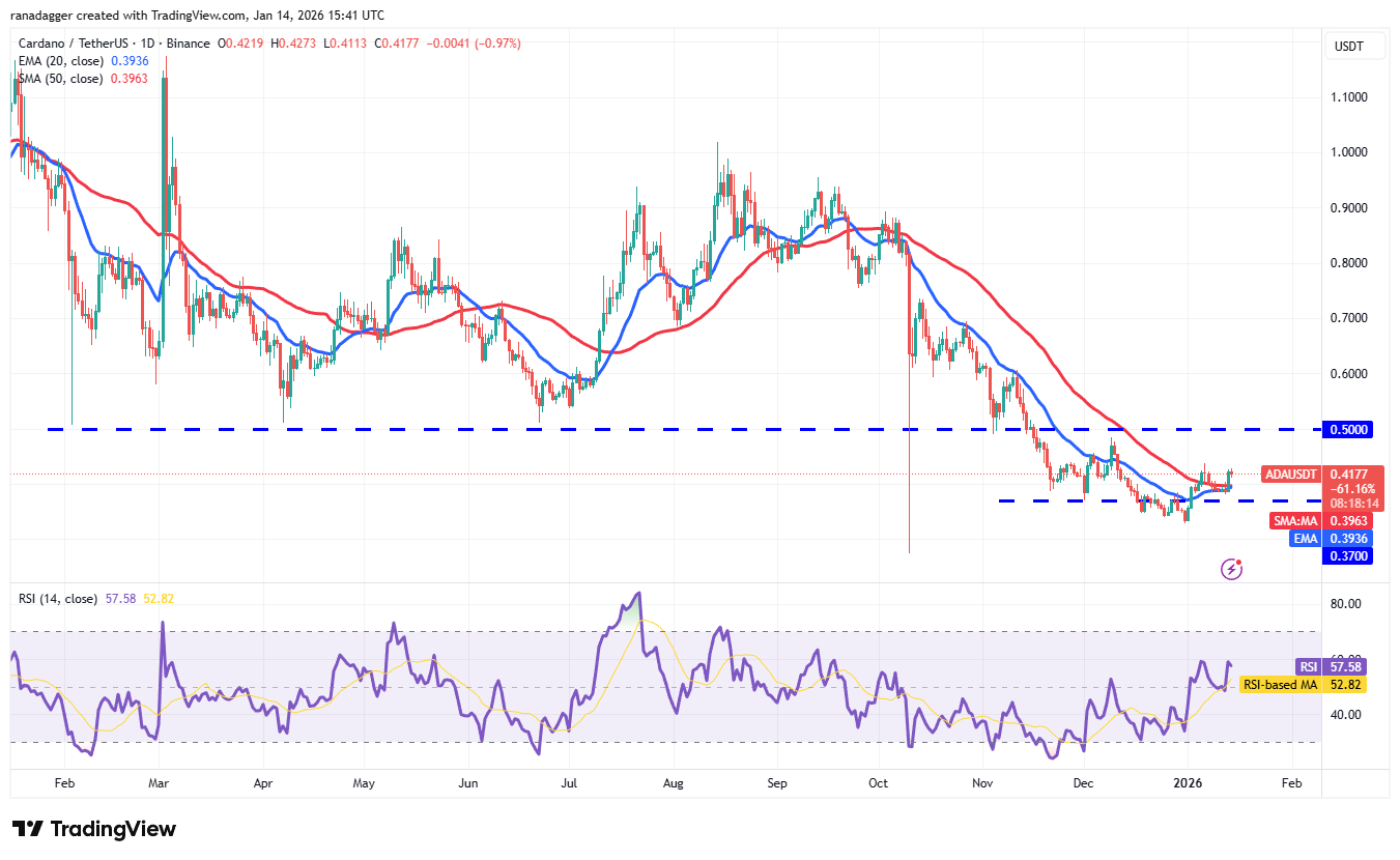 Buyers successfully defended the 20-day EMA ($0.39) in Cardano (ADA), indicating a positive sentiment.