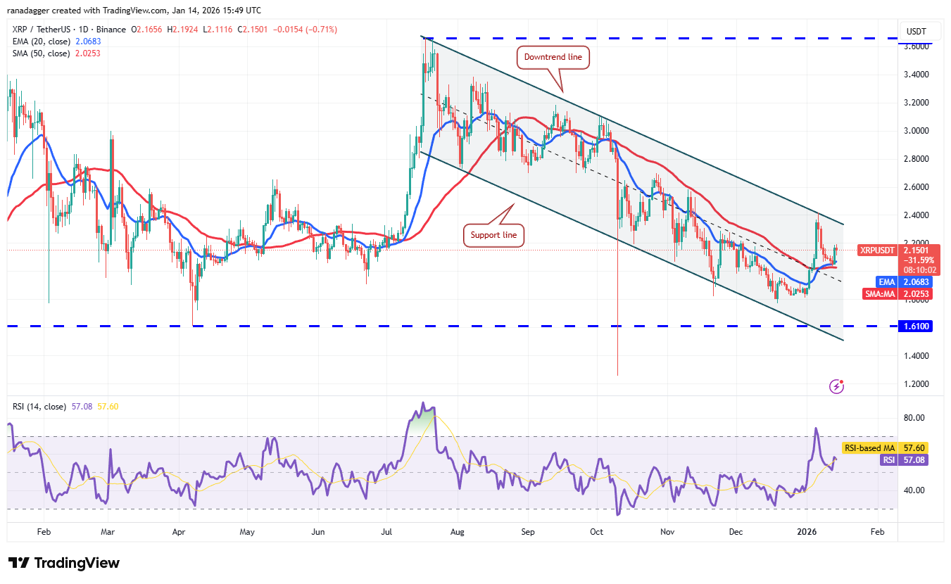 The upsloping 20-day EMA ($2.06) and the RSI in positive territory indicate that the bulls have the upper hand. That increases the possibility of a break above the downtrend line, signaling a potential trend change. The XRP/USDT pair may then rally to $2.70.