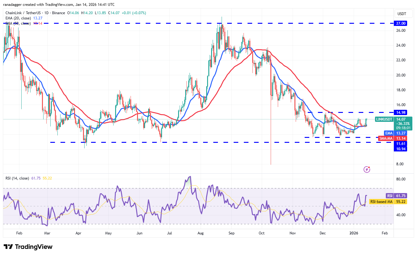 The bulls will attempt to strengthen their position by pushing the Chainlink price above the $14.98 resistance. If they manage to do that, the LINK/USDT pair may rally toward $17.66. That brings the large $10.94 to $27 range into play.