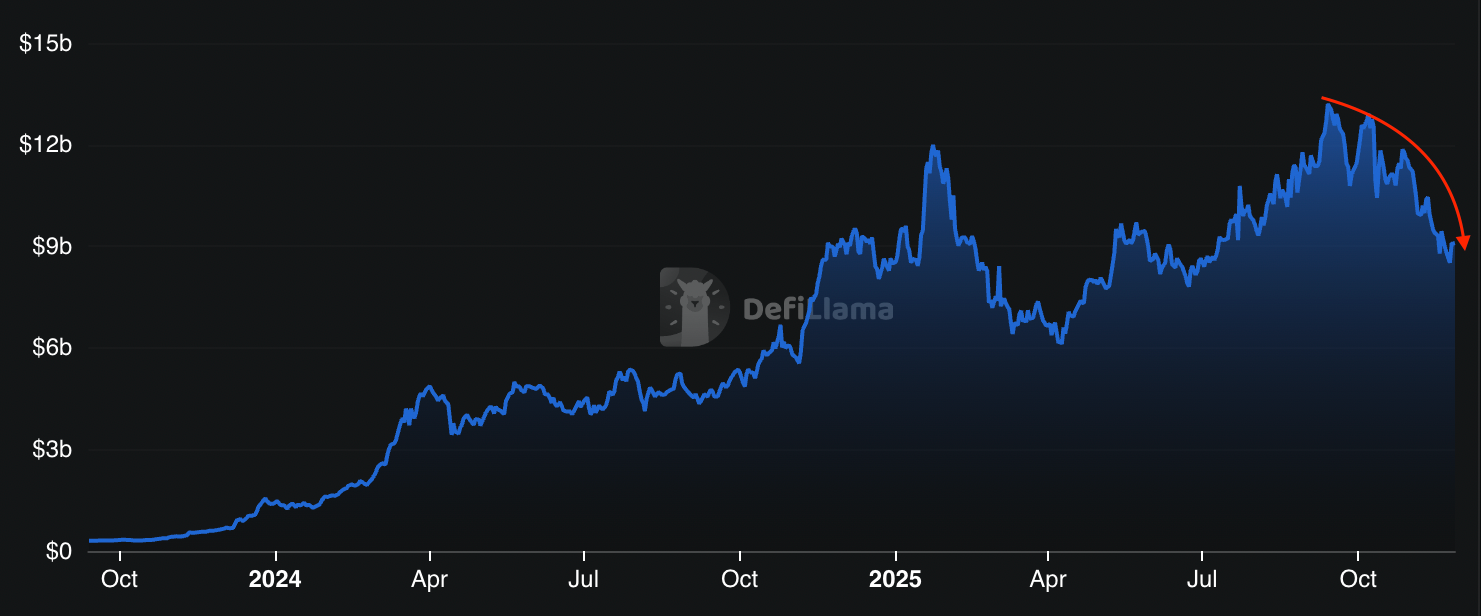 Solana TVL drops 20% in November, with a 16% decline in network fees, signaling weak network demand.