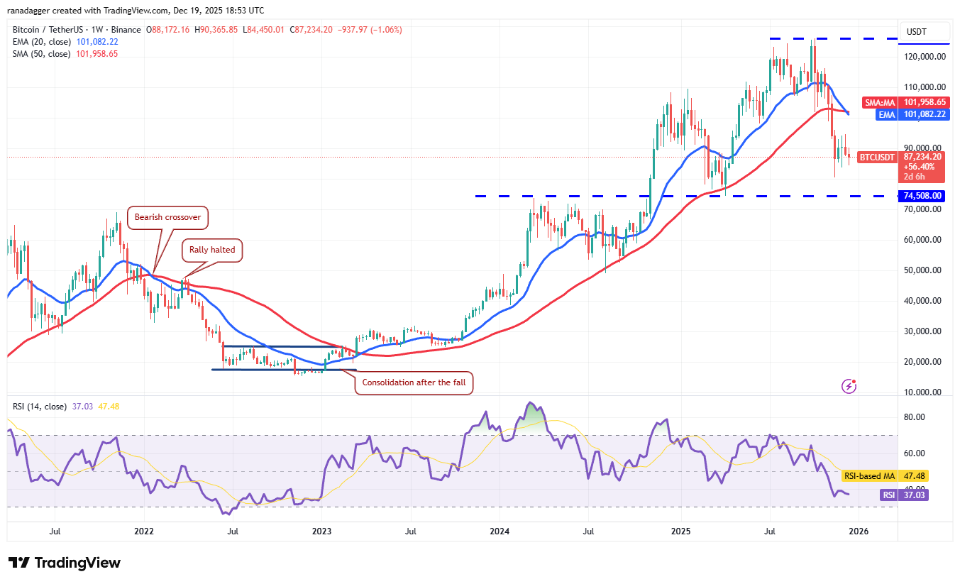 Bitcoin (BTC) began 2025 near $93,000, before plunging to $74,500 in April and then rallying to $126,199 in October. BTC has given up a large part of its gains and is on track to end the year with minor losses.