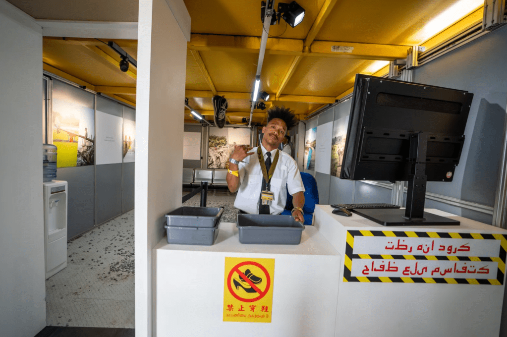 At Terminal 1, which debuted at Glastonbury with a show rumored to have been curated by Banksy, festivalgoers were given a taste of the migrant experience at the British border. Upon entering, visitors were forced to answer a question from the British citizenship test and were sent to the back of the queue if they got it wrong. They then passed through a cabin designed like a refugee camp, before entering Jungle Gym.