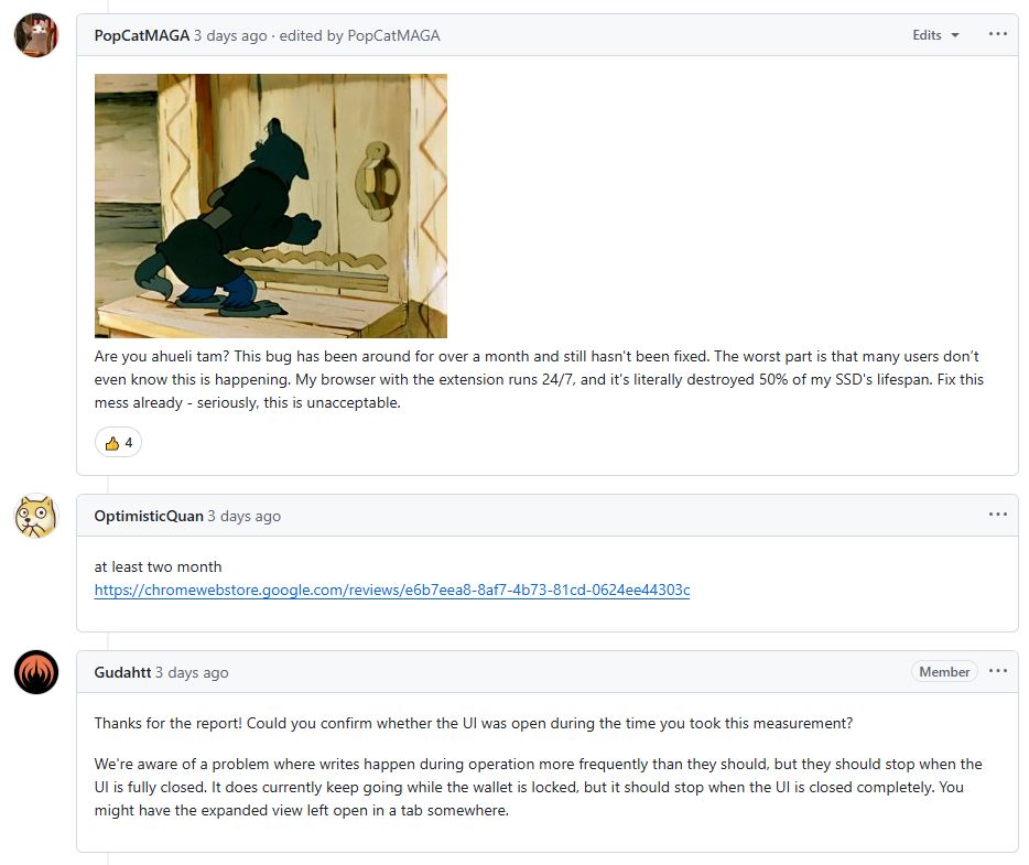 One of the more recent reports came from a user under the handle ripper31337, who said in a GitHub bug report on June 24 that after a fresh install of the MetaMask extension on Chromium-based browsers, such as Chrome, Edge and Opera, they discovered it was continuously writing data to the solid state drives (SSDs) in the background without user interaction.