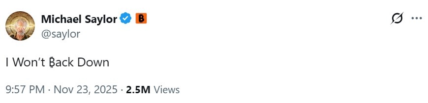 Despite the slowdown in stock prices, Strategy chairman Michael Saylor showed his resolve on X, saying he “won’t back down.”