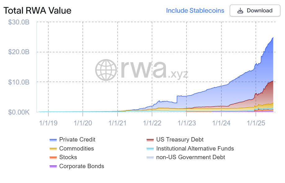 Together, these and other firms have fueled the rapid growth of tokenized RWAs, with onchain financial assets now nearing $25 billion in cumulative value.
