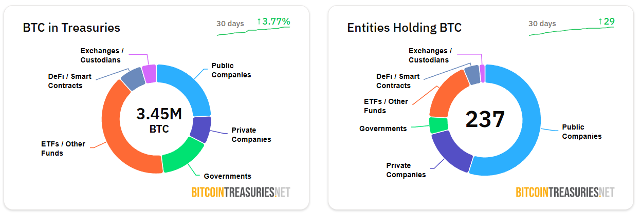 The Parataxis announcement comes amid a wave of corporate Bitcoin adoption. More than 237 public companies now hold Bitcoin on their balance sheets, up from 124 firms just weeks earlier, representing roughly 3.96% of the total BTC supply, according to BitcoinTreasuries.NET.