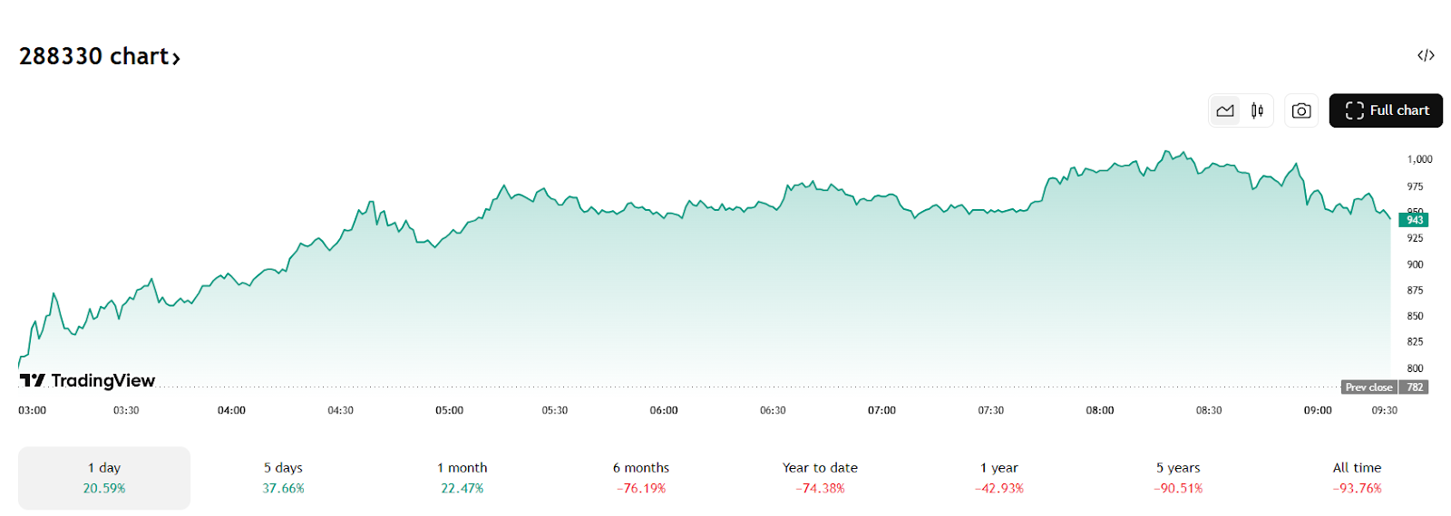 Bridge Biotherapeutics stock price, 1-day chart. Source: TradingView