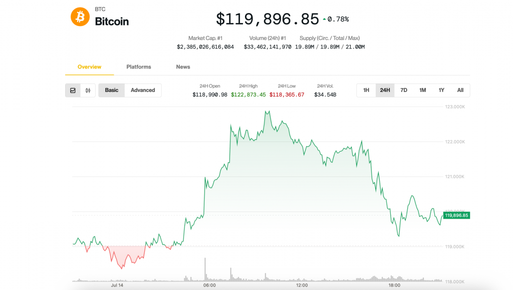 BTC slipped below $120,000 late in the U.S. day, shedding most of its overnight advance, but holding on to a modest 0.6% gain over the past 24 hours. Ethereum’s ether {{ETH}} slid back below $3,000, while dogecoin