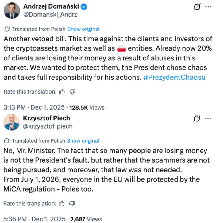 Crypto advocates, including Polish economist Krzysztof Piech, quickly pushed back, arguing that the president cannot be held responsible for authorities failing to pursue scammers.