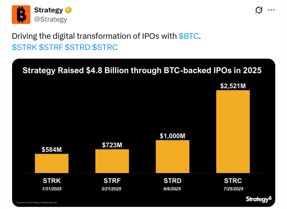 STRC is the latest in Strategy’s series of perpetual preferred offerings used to finance its Bitcoin buys.