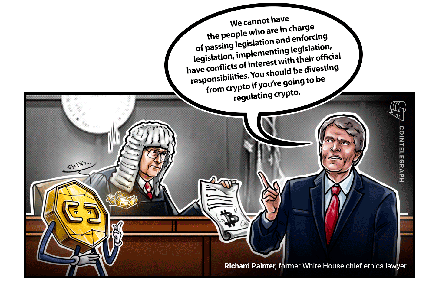 “We cannot have the people who are in charge of passing legislation and enforcing legislation, implementing legislation, have conflicts of interest with their official responsibilities. You should be divesting from crypto if you’re going to be regulating crypto.”