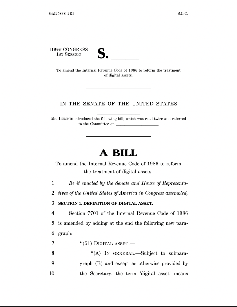 Senator Lummis’s crypto tax draft bill. Source: Senator Lummis