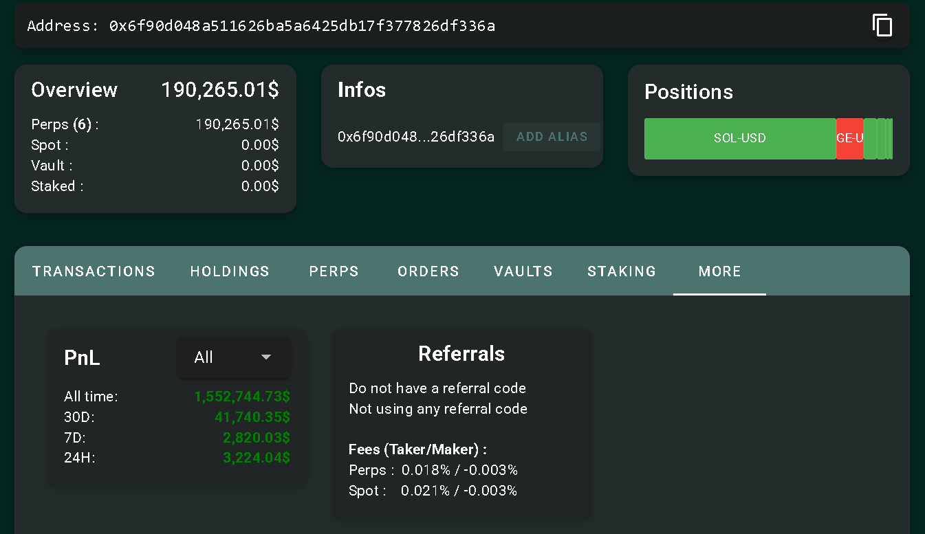 Market observer Adverse Selectee highlighted a small trading account holding less than $200,000 in equity on Thursday. Over the past two weeks, the account recorded a trading volume of $1.4 billion and has consistently ranked among the top contributors to the exchange’s total maker volume.
