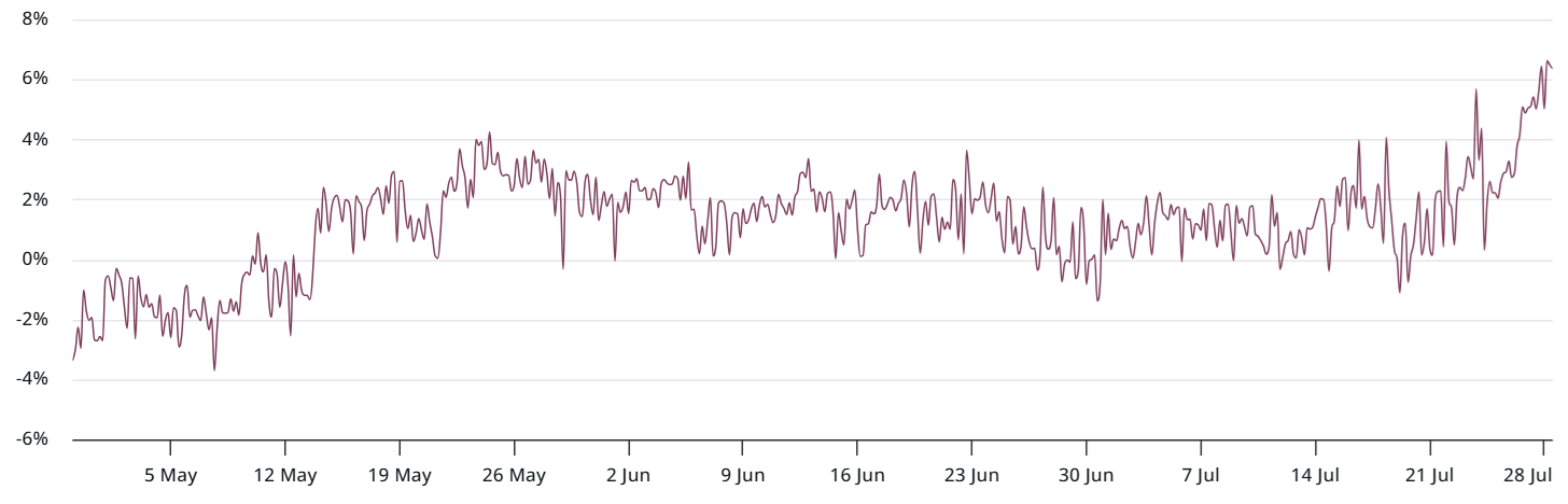 To gauge whether professional traders are warming up to the idea of a rally to $260, it’s worth examining the monthly futures market. Under neutral market conditions, these contracts usually trade at a 5% to 10% premium over spot prices, accounting for the longer settlement period.