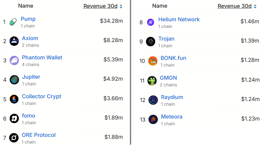 Solana DApps 30-day revenue, USD. Source: DefiLlama