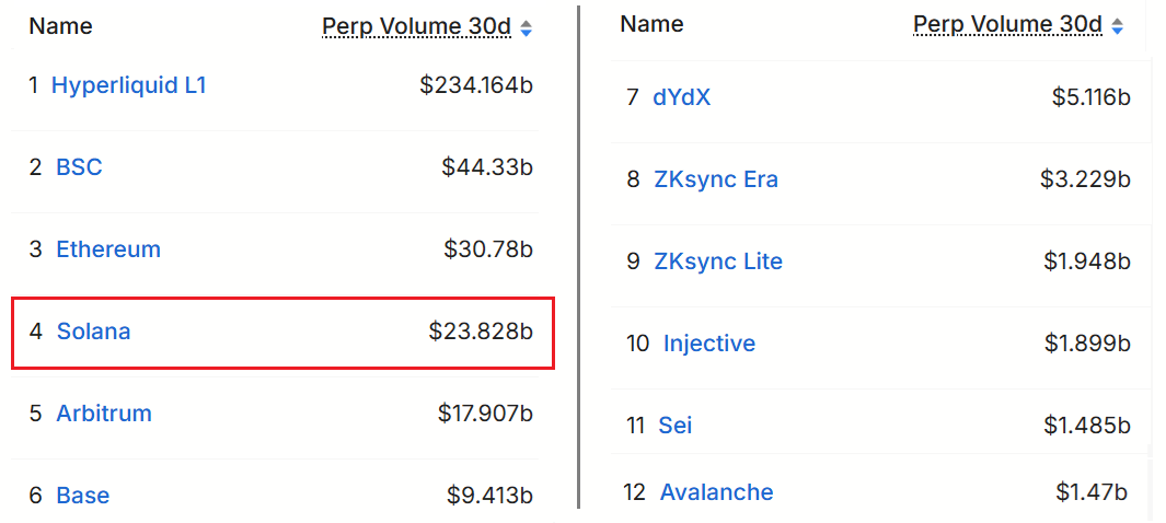 Perpetual contracts 30-day activity, USD. Source: DefiLlama