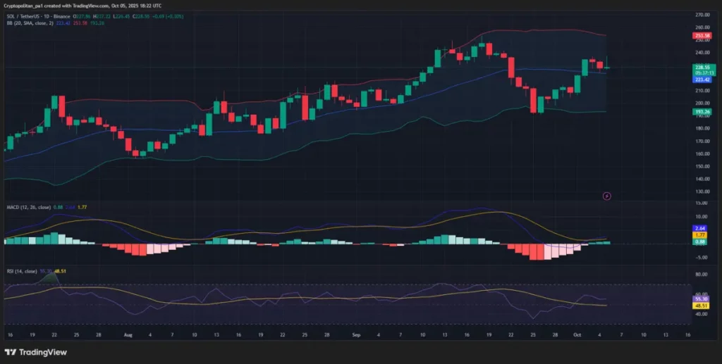 From a technical perspective, the MACD shows rising bearish momentum at -0.78, with the indicator showing rising selling pressure with recent candles. The RSI (Relative Strength Index) fell to 52.76, indicating that Solana faces strong resistance at the $235 mark and SOL needs to defend the $225 level to prevent a breakdown towards $200.