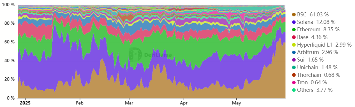 This contrast is evident in the fee data: Over 30 days, Solana generated $48.7 million in fees, compared to Ethereum’s $36.9 million, despite Ethereum having a significantly larger deposit base. Meanwhile, BNB Chain, despite a recent uptick, lags behind with only $15.1 million in fees, making it easier for projects to artificially inflate volume figures.