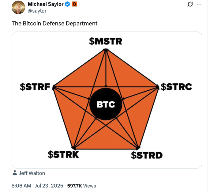 On Wednesday, Strategy co-founder Saylor took to X to refer to STRC as one of the four pillars of the “Bitcoin defense department.”