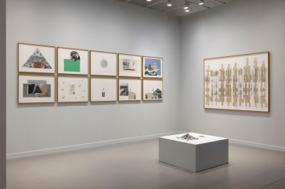 Image Credit: Ismail Noor Tabari Artspace’s booth is dedicated to Hazem Harb, a Palestinian artist whose work brings collage and installation together through an ongoing engagement with archaeology, mapping, and displacement. The presentation draws from works made between 2018 and the present, allowing different moments in Harb’s practice to speak to one another rather than forcing a single narrative.