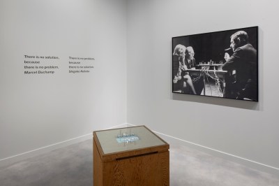 Image Credit: Photography by Nicholas Knight, Courtesy of Fergus McCaffrey. Fergus McCaffrey’s booth centers on Shigeko Kubota’s Duchampiana: Video Chess (1968–1975), a video sculpture that grew out of Kubota’s documentation of Reunion, the 1968 performance in which Marcel Duchamp and John Cage played a game of chess on an electronic board designed by Lowell Cross.