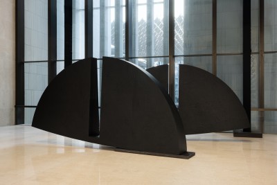 Image Credit: Image courtesy of GRAY Chicago/New York. © Torkwase Dyson New York’s Gray gallery has built its presentation around a single work: Nia (2026), a monumental sculpture by Torkwase Dyson made from steel, graphite, paint, and wood. The scale is tremendous. Composed of two identicall notched semi circles, the work stretches horizontally and vertically, with sweeping arcs broken by sharp structural openings.
