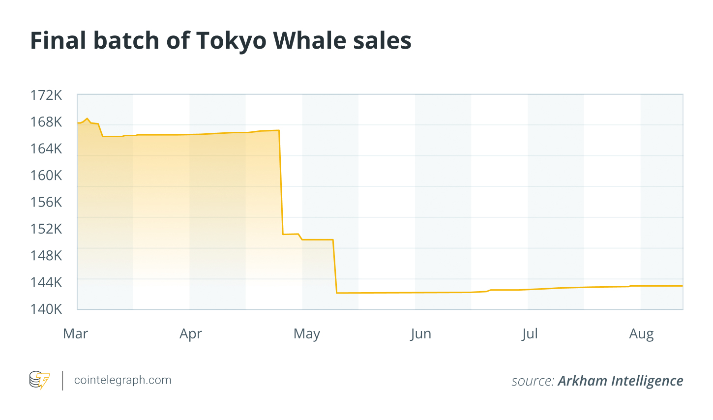 By Aug. 1, Arkham data showed Mt. Gox’s holdings had fallen by nearly 100,000 BTC, leaving around 46,000 BTC still under the trustee’s control.