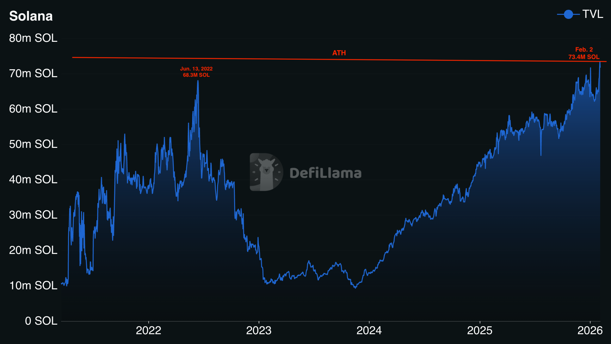 The network’s total value locked (TVL), which measures the amount deposited in its smart contracts, rose to its highest level ever at 73.4 million SOL on Monday, worth about $7.5 billion at current rates. This represents an 18% increase over the last week.