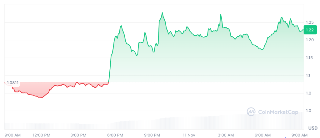 Aerodrome Finance’s AERO is now trading near $1.22, up by about 13% in 24 hours. The project has drawn renewed attention from participants following steady protocol revenue growth and recent emissions adjustments. It appears to be an improving balance between token distribution and buyback activity, factors that have lifted the token over the past week.