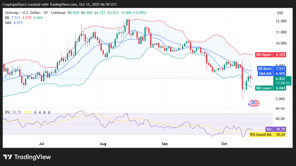 On October 15, 2025, Uniswap price analysis revealed a mixed trend for the day. The altcoin’s price slightly increased to $6.83 in the past 24 hours. Overall, the cryptocurrency gained up to 4.17% of its value, as it faces strong resistance around $7.06. This situation also indicates that selling pressure is high around the $7 level, as the coin has faced a recent rejection at that price point.