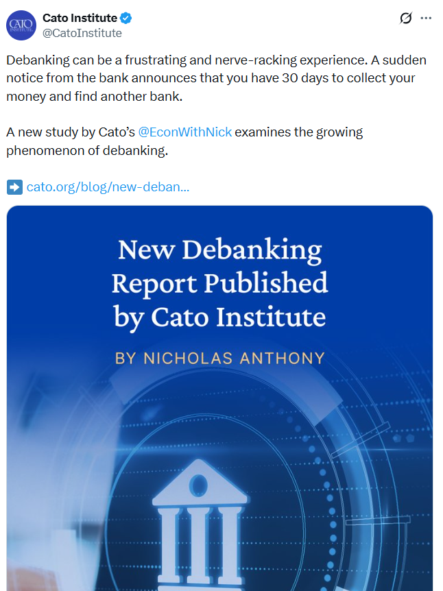 “Based on public evidence, governmental debanking appears to be the most significant issue majority of cases over time can be found where government officials have intervened in the market by either directly or indirectly telling banks how to run their business.”