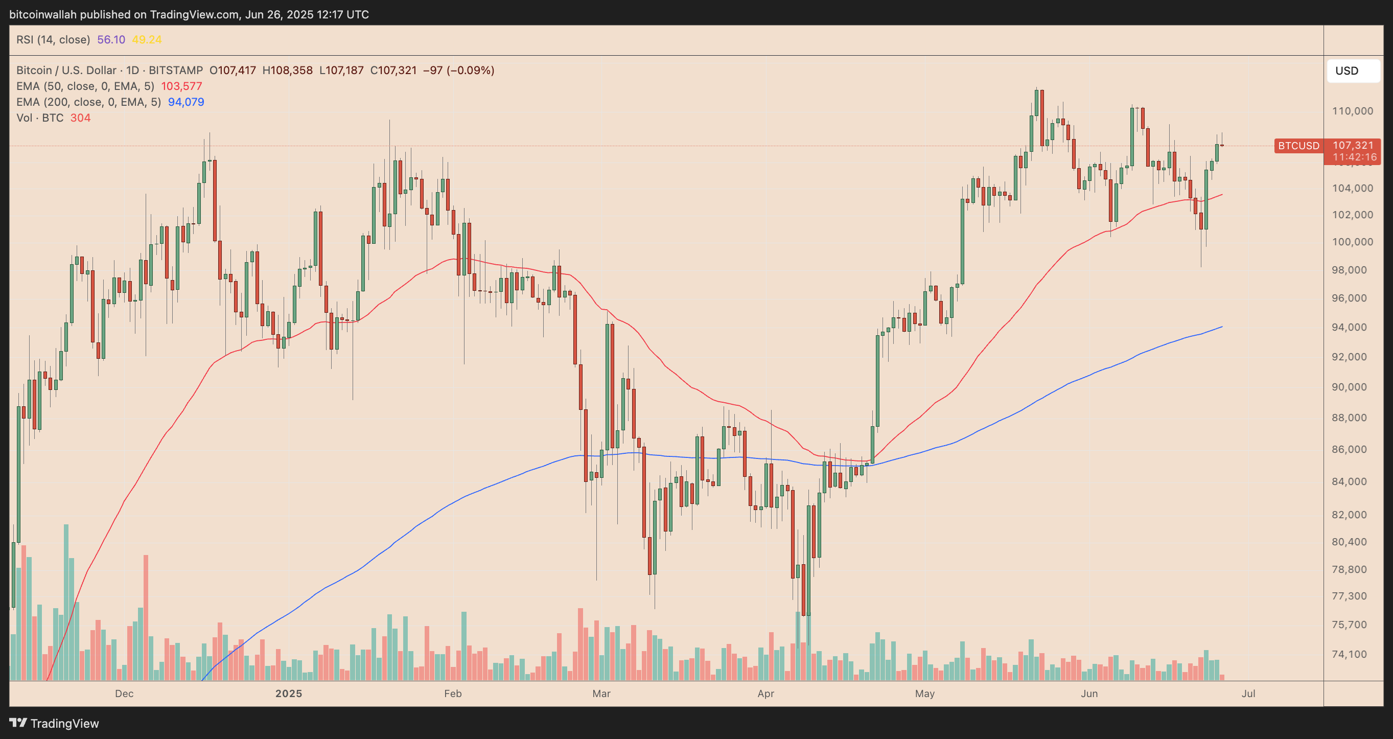 BTC’s price has risen by over 2% to around $108,360 since the WSJ report, with ETF inflows further suggesting a growing risk appetite among retail traders and institutional investors.