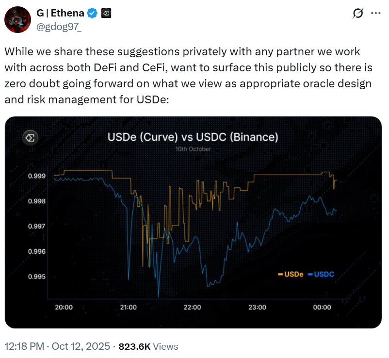 In a separate analysis, Haseeb Qureshi, managing partner at crypto investment fund Dragonfly, said that USDe never actually depegged, noting that its deepest liquidity sat on Curve, where prices deviated by less than 0.3%. On Binance, API failures and the absence of a direct mint-and-redeem channel with Ethena prevented market makers from restoring the peg.