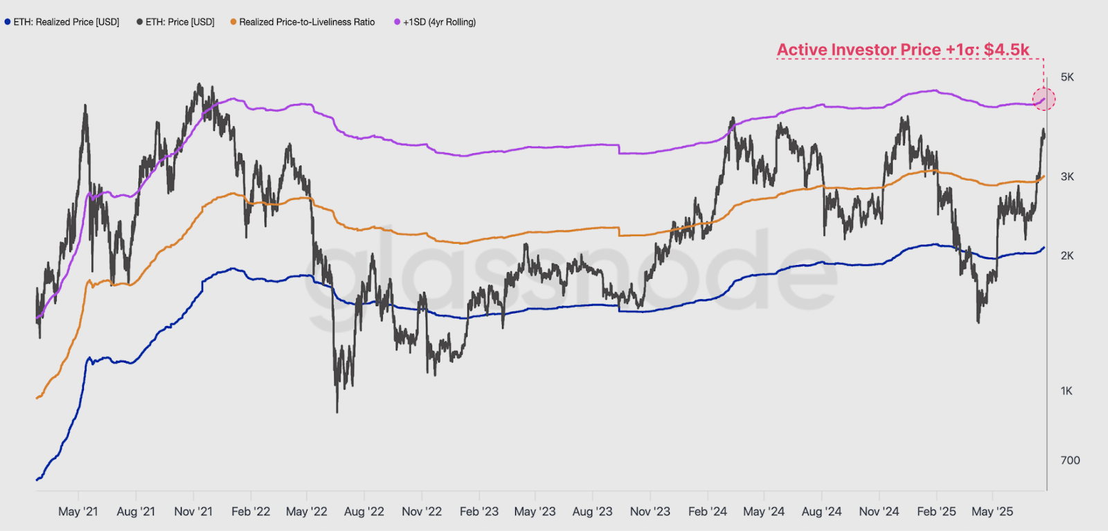 Above, the first major resistance sits at $4,500, representing the Ether’s active realized price pushed one standard deviation higher.