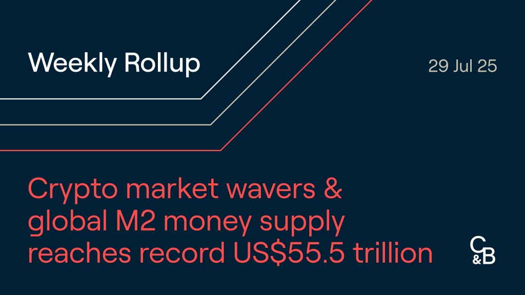 In another strong week for TradFi assets, the S&P 500 and the Nasdaq closed at record highs. The continued rally was presumably due to strong Q2 corporate earnings, global M2 money supply reaching a record US$55.5 trillion, and markets anticipating a trade deal between the U.S. and the European Union, which was reached over the weekend. The trade agreement includes a 15% tariff to be levied on European goods, which is 15% lower than the 30% tariff that President Trump originally proposed.