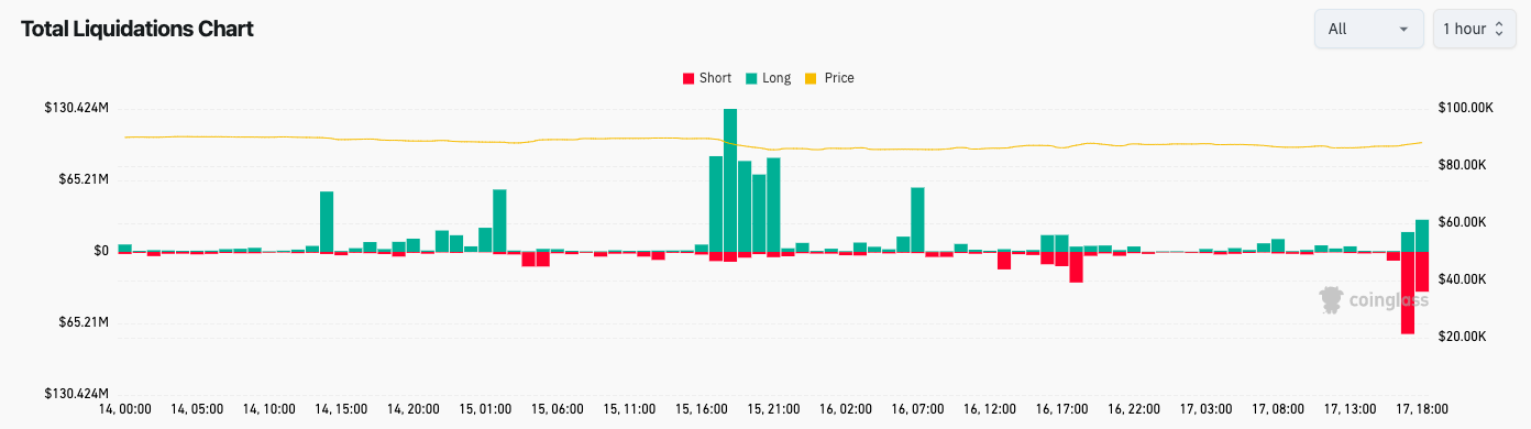 Home»Ethereum»Whipsaw BTC Price Action Puts Shorts on the Chopping Block at $90,000