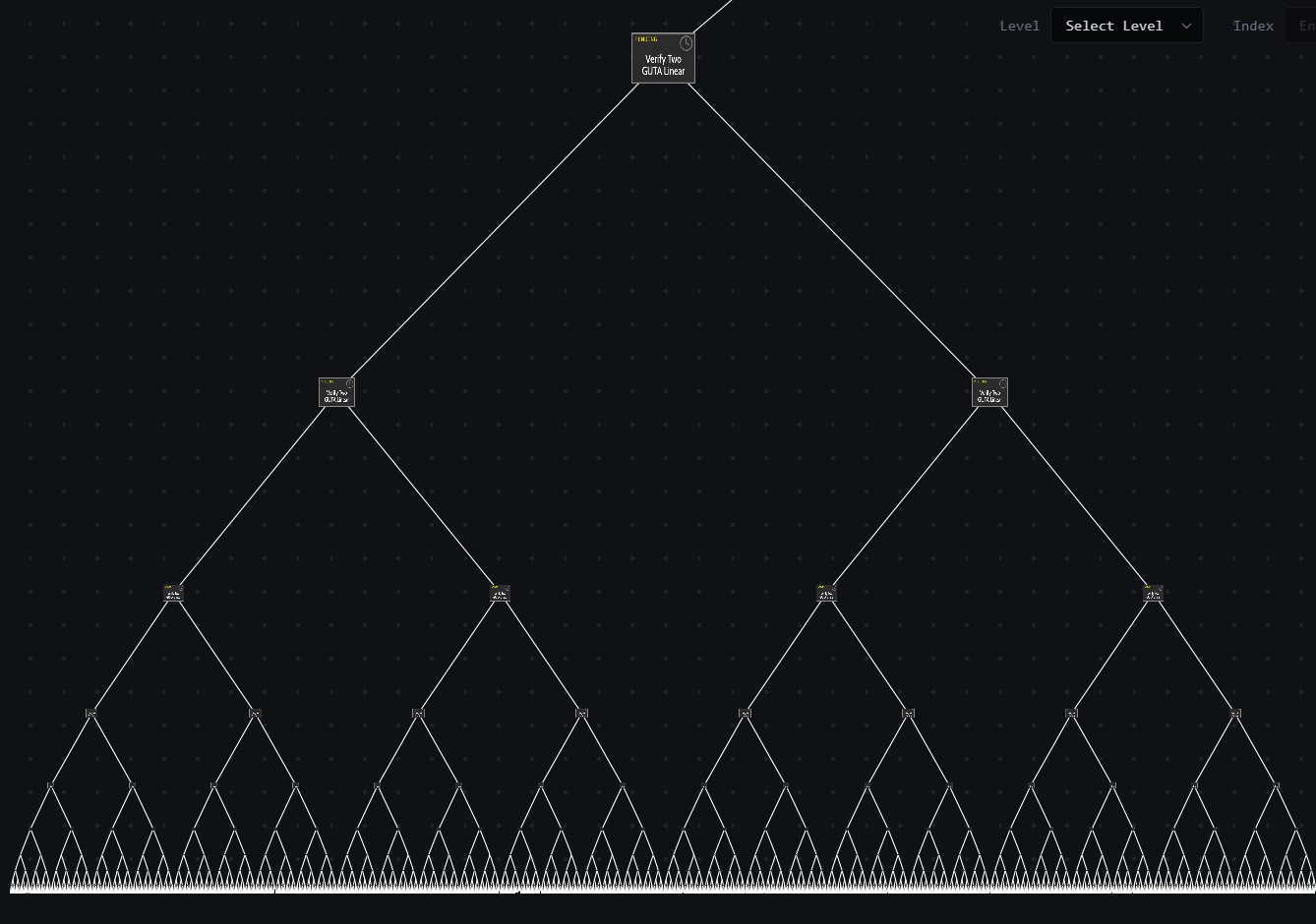 “Let’s say we start with 16 users’ transactions. We can take those 16 and make them into eight proofs, then we can take the eight proofs and make them into four proofs,” Feldman explained while sharing a graphic of a proof tree where multiple proofs ultimately become one.