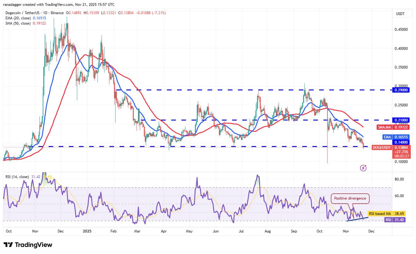 Alternatively, a break and close below $0.14 indicates that the bears have overpowered the bulls. The pair may then start a new downtrend toward the Oct. 10 low of $0.10.